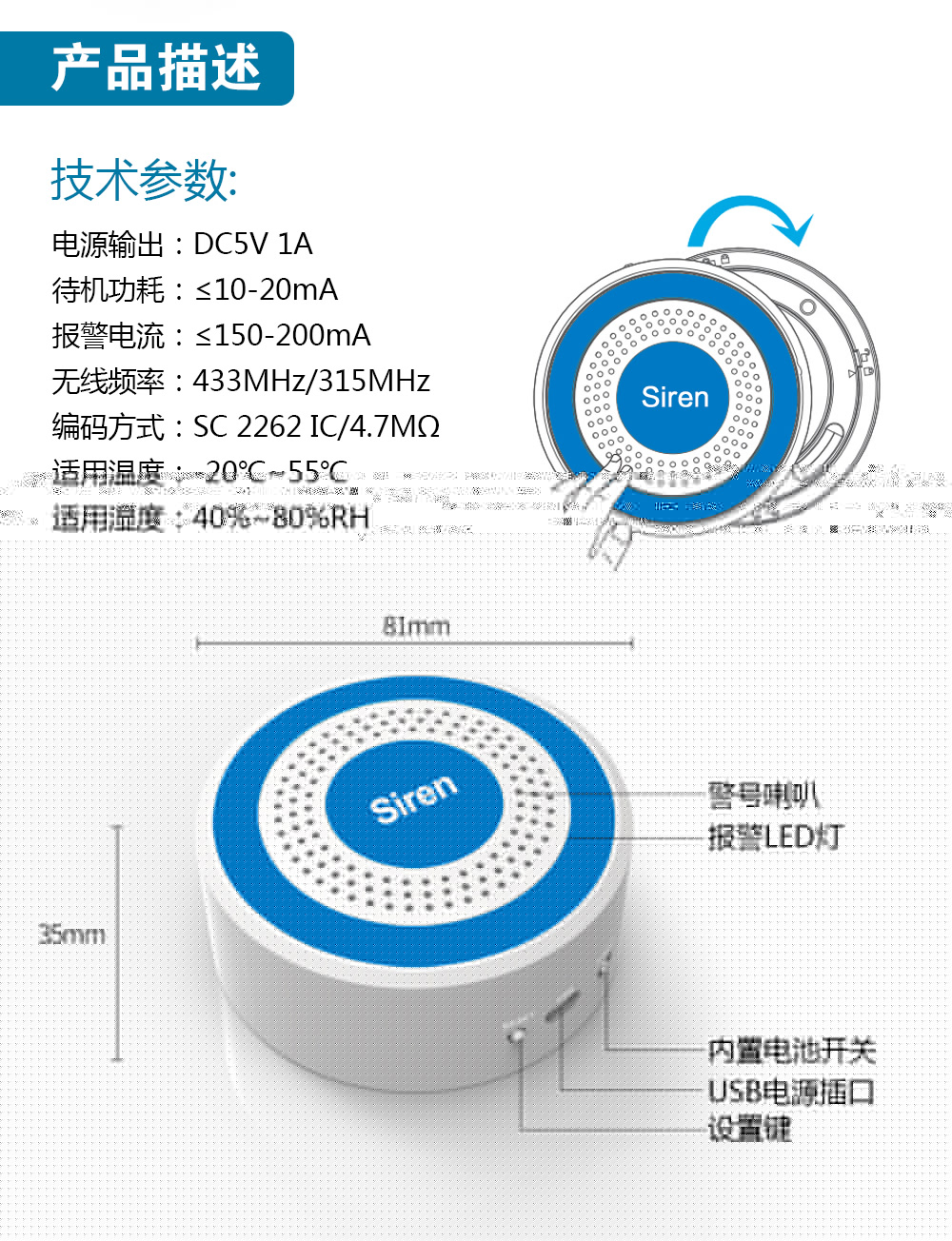 無線聲光報警器PE-519
